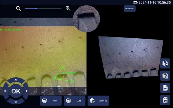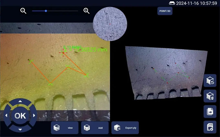 亞泰光電三維內(nèi)窺鏡的核心突破在于高精度三維建模與實(shí)時測量。其搭載的雙目立體成像技術(shù),可生成3D點(diǎn)云圖、深度圖和剖面圖,最小測量精度達(dá)到0.01mm,遠(yuǎn)超傳統(tǒng)二維檢測的局限。