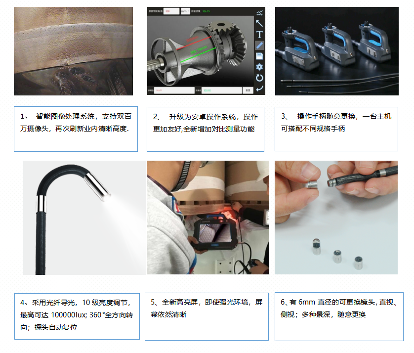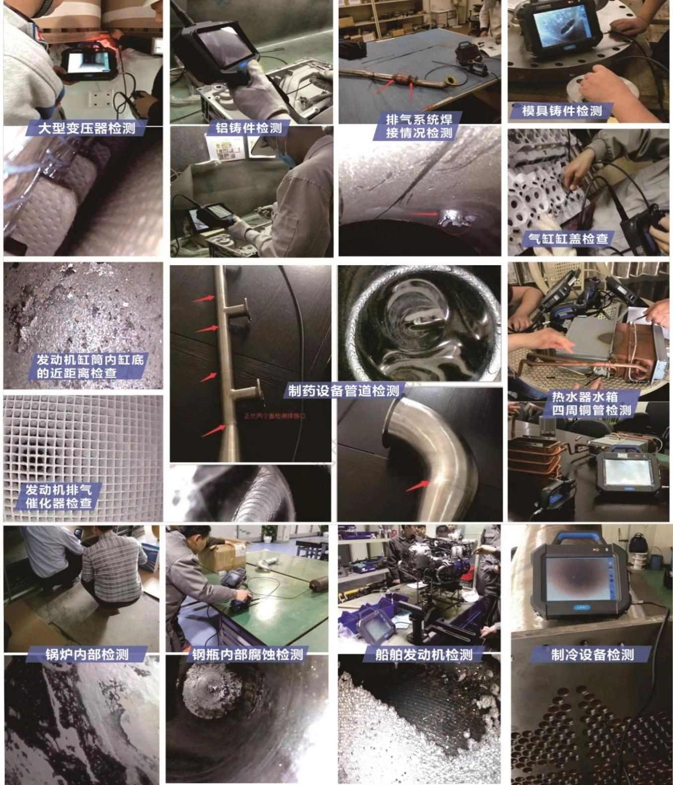 本儀器廣泛應(yīng)用于航空、汽車、船舶、電氣、化學(xué)、電力等現(xiàn)代核心工業(yè)生產(chǎn)、檢修等多個環(huán)節(jié)。具有直接可視的特點,能夠直接觀測管道、渦輪、汽缸、發(fā)動機等大型裝置內(nèi)表面是否存在缺陷或異狀。可進(jìn)行實時拍照和視頻錄制,為分析設(shè)備使用狀況及設(shè)備生產(chǎn)保障提供不可或缺的數(shù)據(jù)采集。