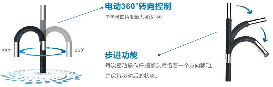 l自動鎖定 精準(zhǔn)定位——亞泰專利, 步進(jìn)、快慢速調(diào)節(jié)和微調(diào)鎖定功能以及電動360°轉(zhuǎn)向控制,最大單向220°彎曲角度。