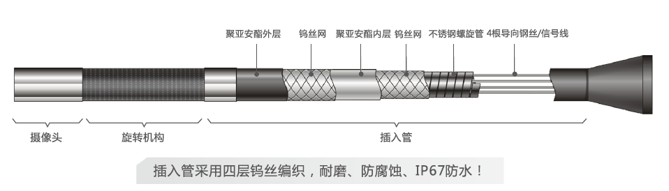 l插入管材質(zhì)——插入管材質(zhì)為四層鎢絲編織耐磨管,防水等級IP67,長度可定制。