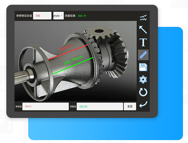 支持點到點,點到線,點到面,多線段,周長,深度, 面積等測量模式。對缺陷的分辨力優(yōu)于 0.03mm,缺陷測 量結(jié)果與缺陷實際大小誤差小于 5% |